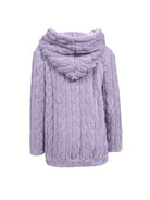 This Genia Hooded Full-Zip Sweater is your dream solution for lasting style and warmth. Say goodbye to bulky styles and the frustration of clothes that quickly wear out, and hello to a flattering fit and unmatched softness that lasts for seasons. Designed for cozy outdoor excursions or relaxing at home, combines comfort and style and pairs perfectly with your favorite jeans or pants.